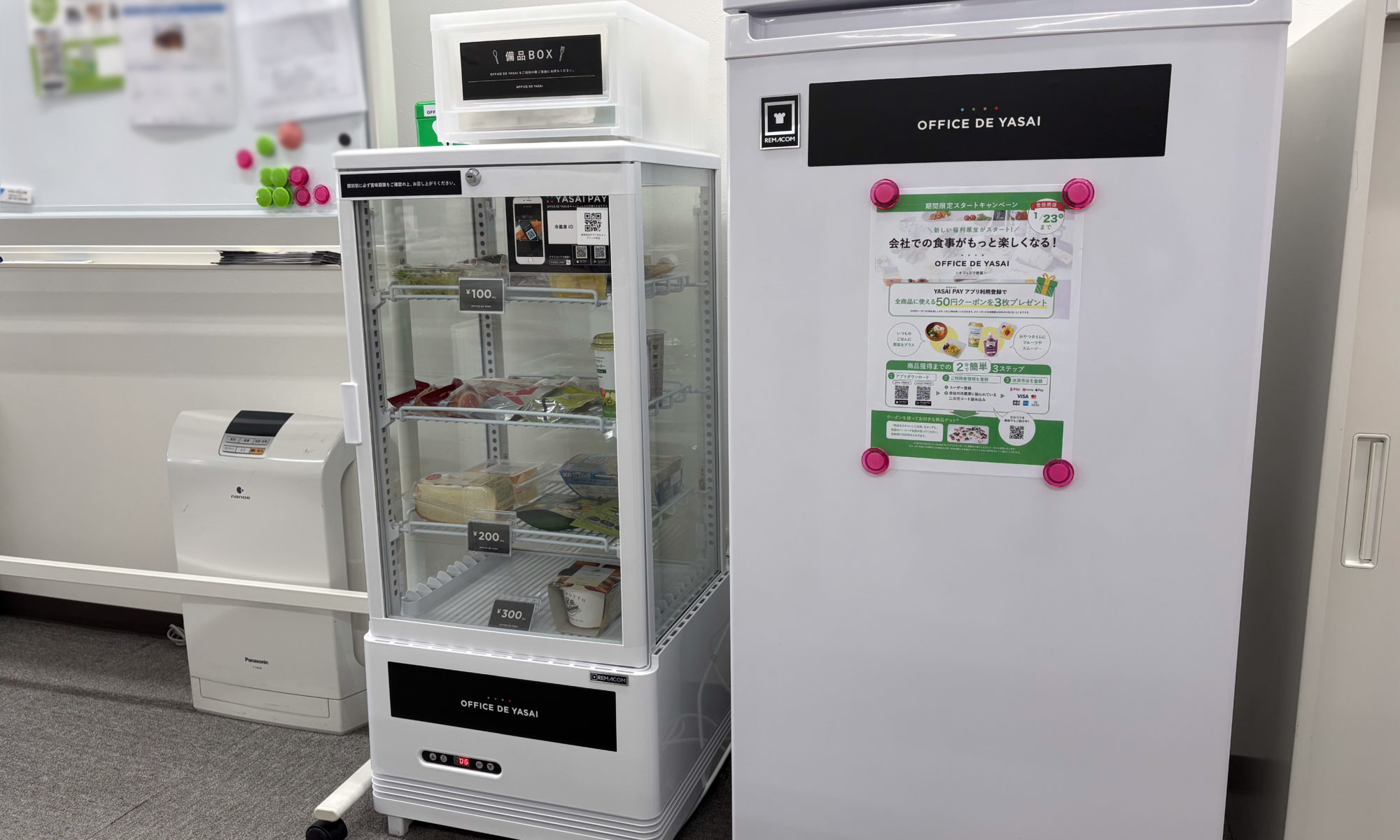 社員食堂…ではなく、設置型の社食なので好きなときに好きなだけ買うことができちゃいます!事務スタッフはもちろん、現場スタッフも外回りの前に買ったり、帰社後に買ったりと、すでに楽しそうに購入している様子が見られます!